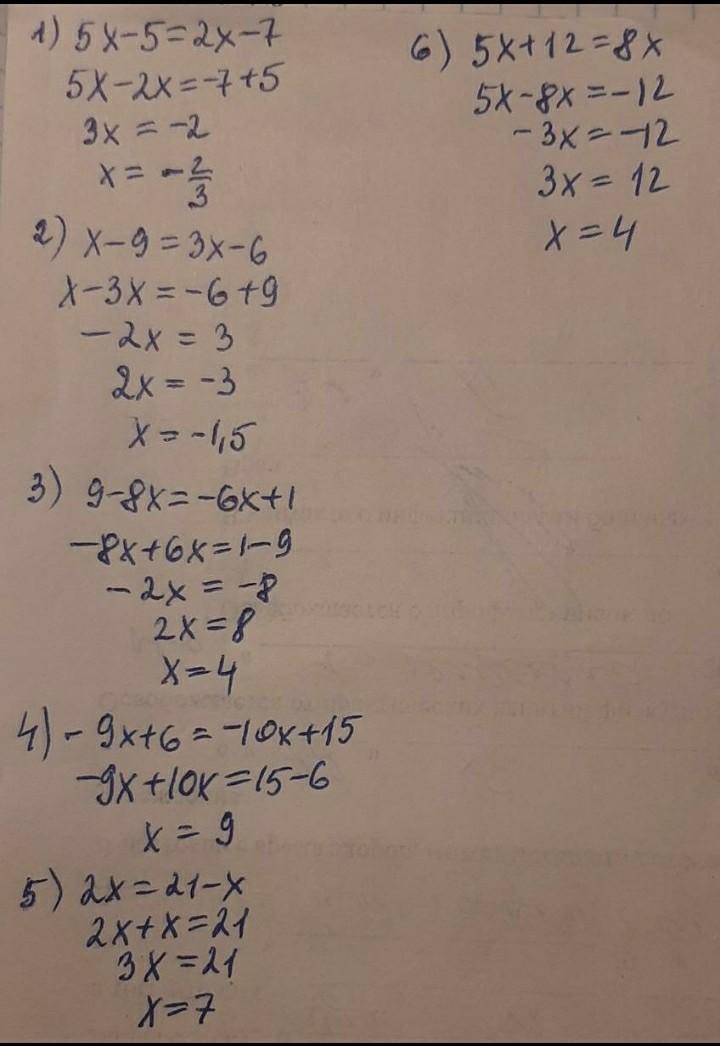 1. 5х-5=2х-7