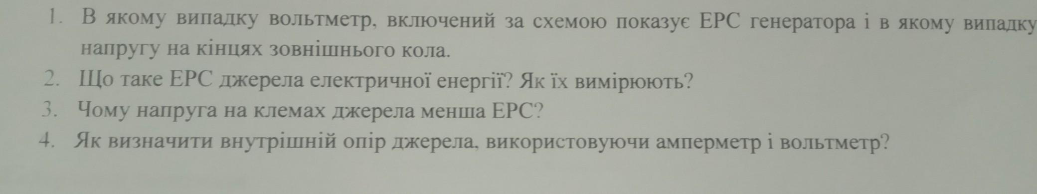 1. Якщо струм через генератор малий (тобто падіння напруги на внутрішньому опорі генератора мало), то вольтметр покаже ЕРС. Якщо ж падінням напруги на внутрішньому опорі знехтувати не можна - те, що ми бачимо, це і є напруга на зовнішньому ланцюзі.