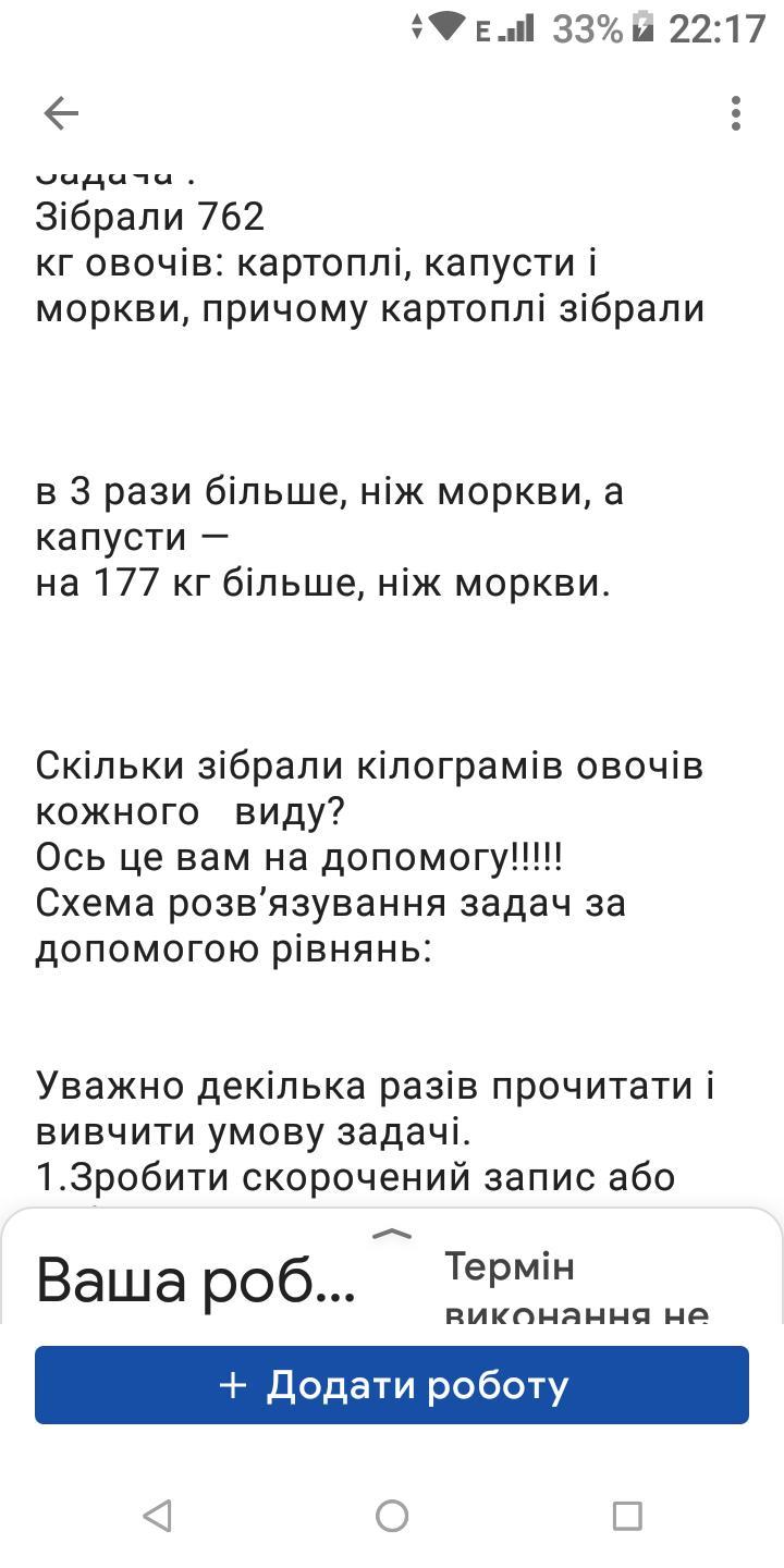 Пошаговое объяснение: морква = х, тоді картопля = 3х, капуста = х+177. Всього 762 значить: