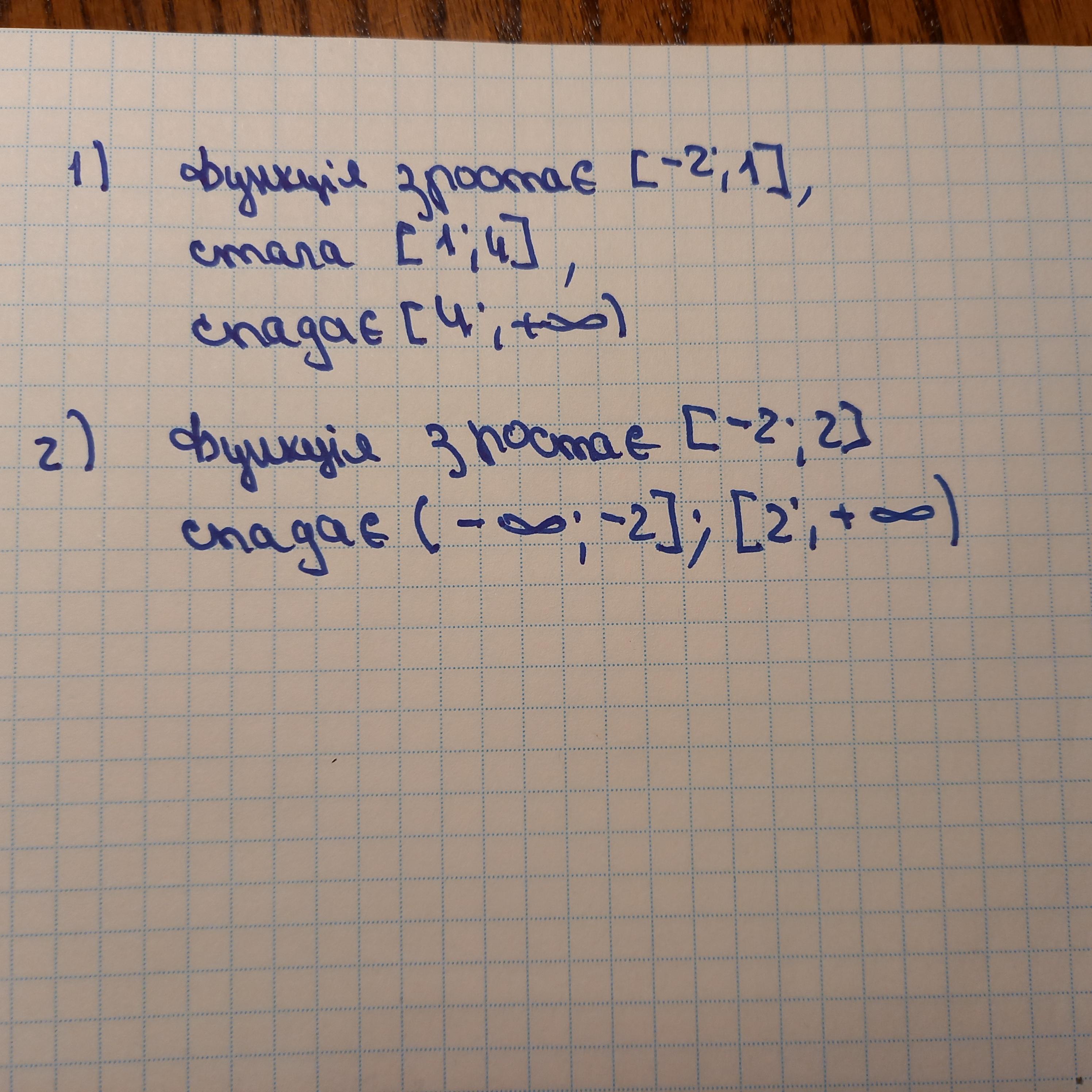 укажіть інтервали сталості,зростання і спадання функцій, зображених на малюнку