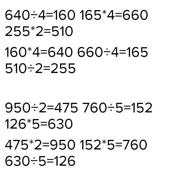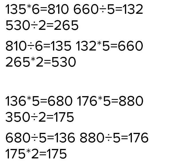 5. Вычисли и проверь. 135×6 176×5 255 ×2 350÷2 950:2 530:2 640:4 760:5 136×5 165×4 126×5 в столбик