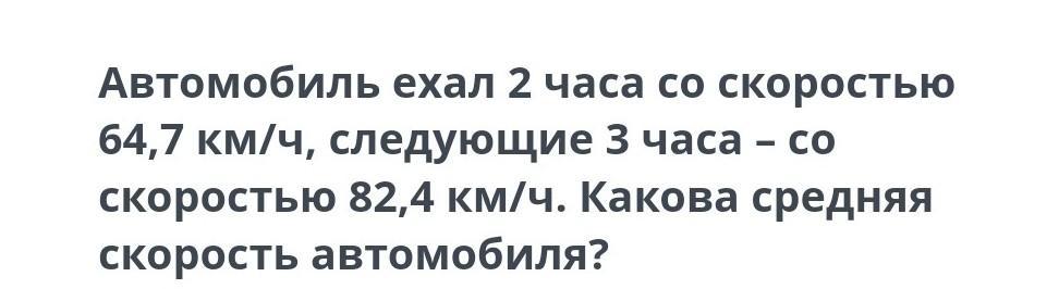 376,6 км / 5 ч = 75,32 км/ч (округляем до двух знаков после запятой)