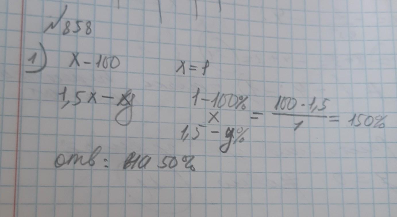 858. На сколько процентов изменилась величина, если она: 1) увеличилась в 1,5 раза в 1,5 раза; 2) уменьшилась 3) увеличилась 4) уменьшилась в 5 раз; в 5 раз?
