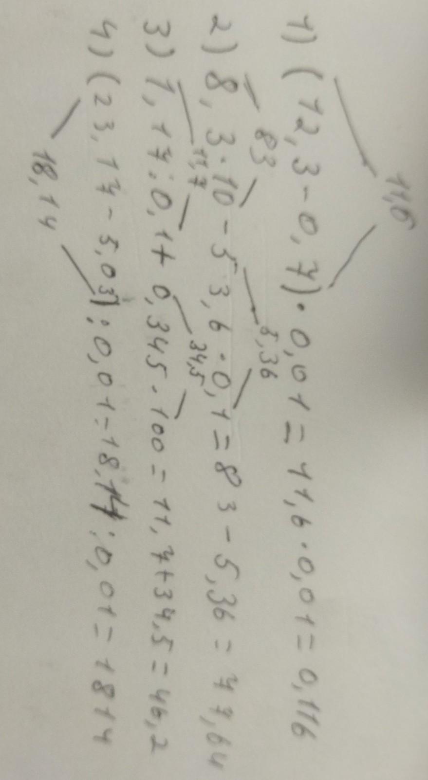 в) 1,17 : 0,1 + 0,345 · 100 (14 баллов);