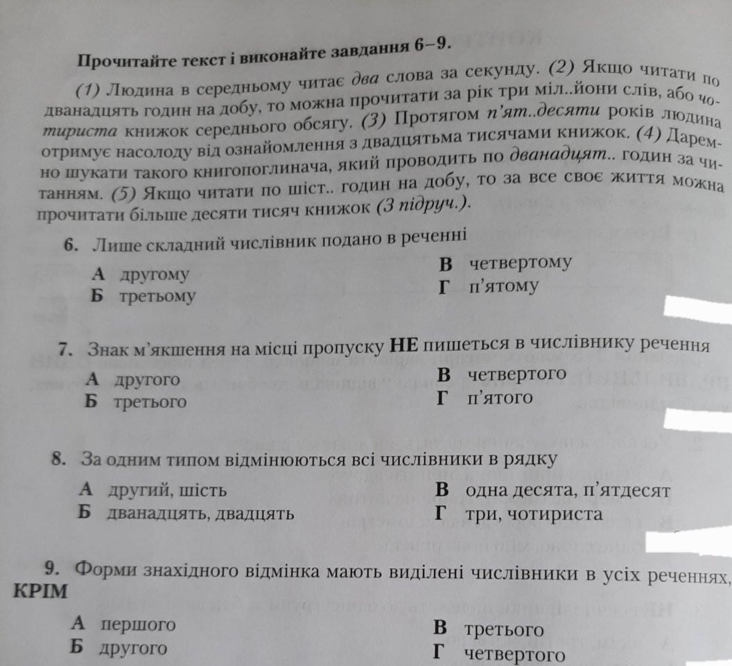 Ответ:6 б , 7 б, 8 в, 9