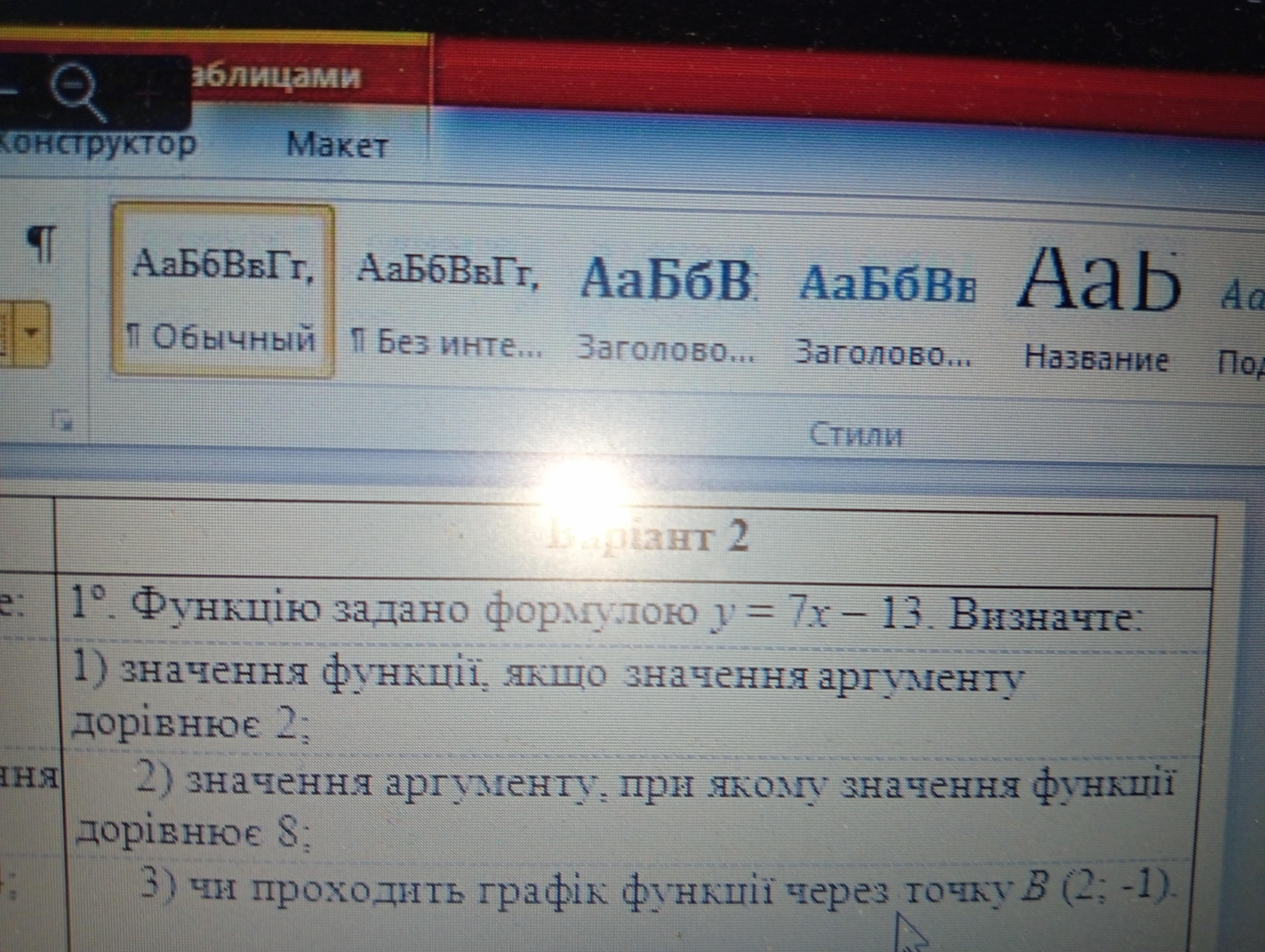 1) Якщо х=2, тоді у=7*2-13=14-13=1