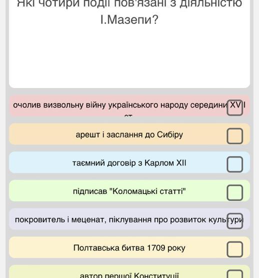 Правильніше буде такий список подій пов'язаних з діяльністю Івана Мазепи: