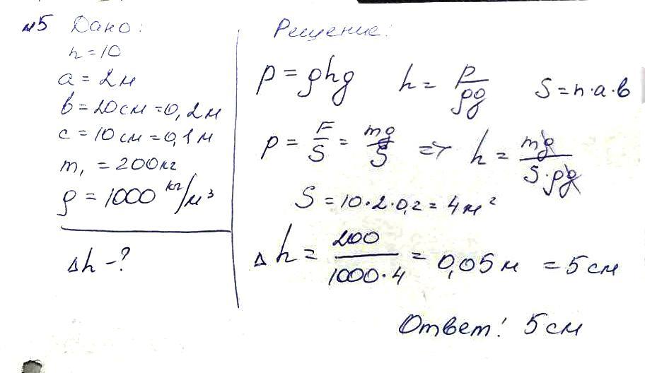 Плот состоит из 10 сухих сосновых брусьев. Длина каждого бруса а = 2,0 м, ширина b = 20 см, толщина с = 10 см. На сколько дополнительно погрузится в воду плот, если на него поместить груз массой m₁ = 200 кг? Плотность воды ρв = 1000 кг/м³. Коэффициент g принять равным 10 Н/кг