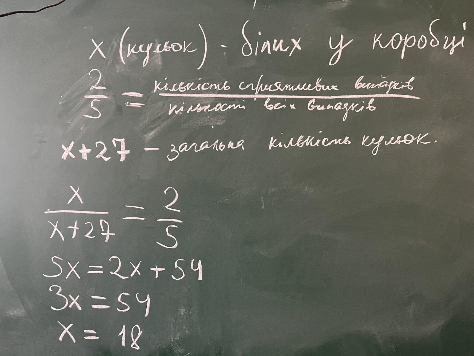 У коробці лежать білі і чорні кульки. Скільки білих кульок у коробці, якщо ймовірність вийняти з неї навмання білу кульку дорівнює 3 , а чорних кульок у коробці 277
