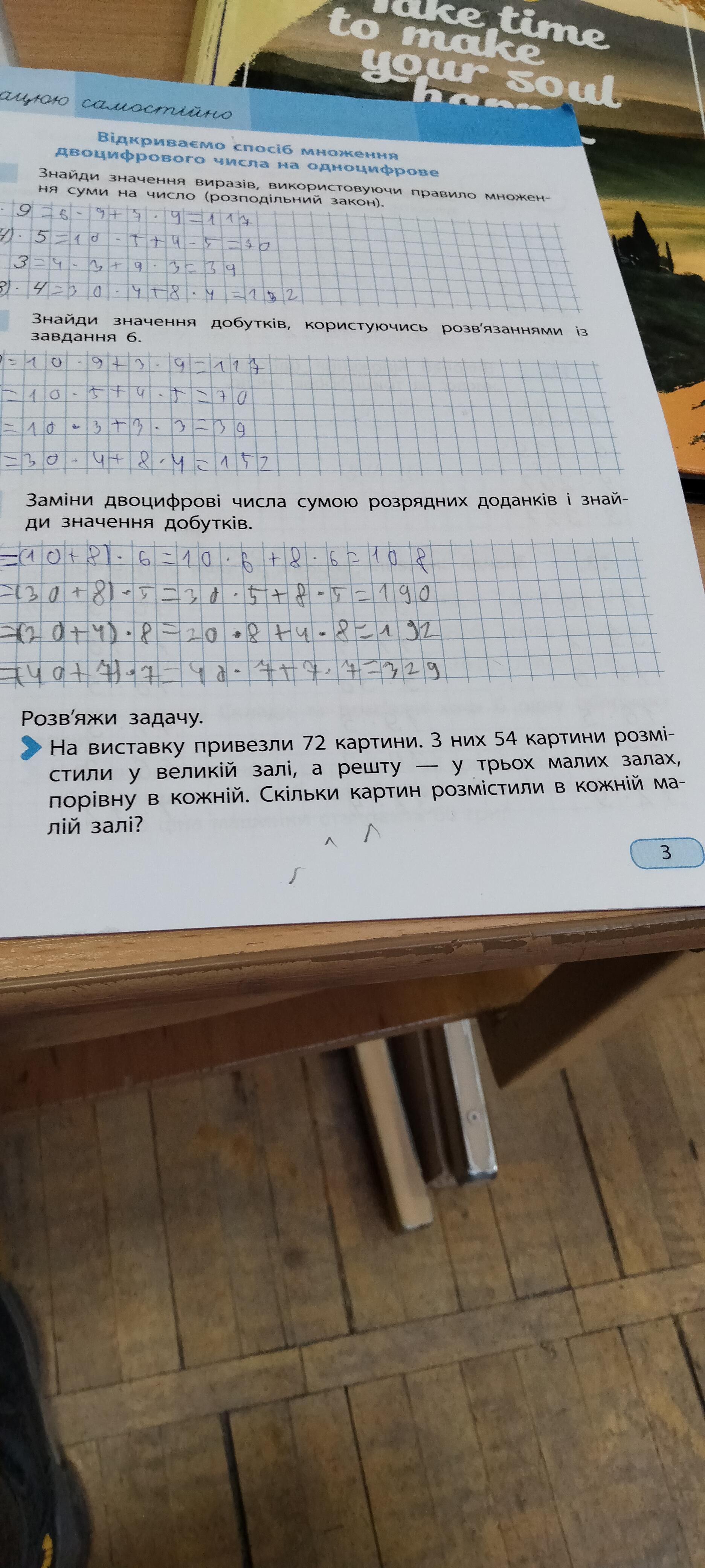 Відповідь: В кожній малій залі розмістили по 6 картин.