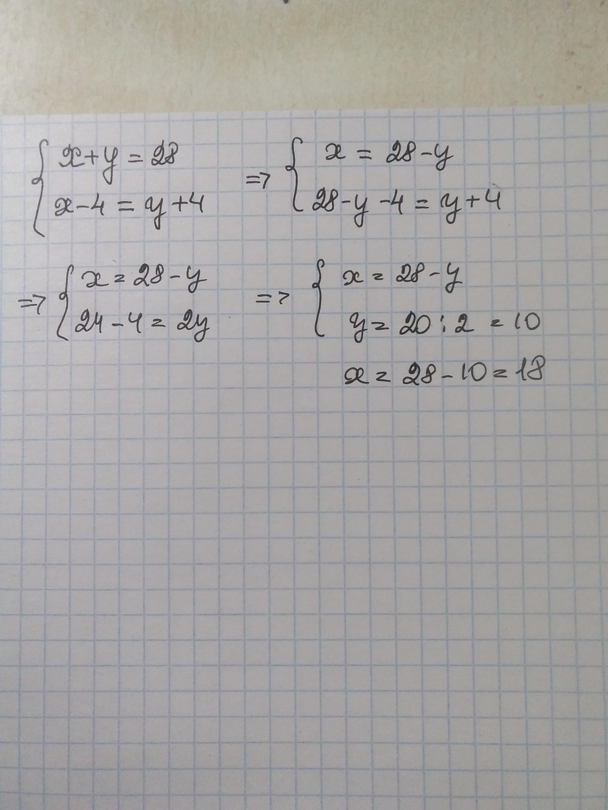 У двох мішках була картопля, якщо з першого мішка пересипали в другий мішок 4 кг картоплі, то в обох мішках картоплі буде порівну. Також відомо що в двох мішках разом було 28 кг картоплі. Скільки ж картоплі було в кожному мішку?