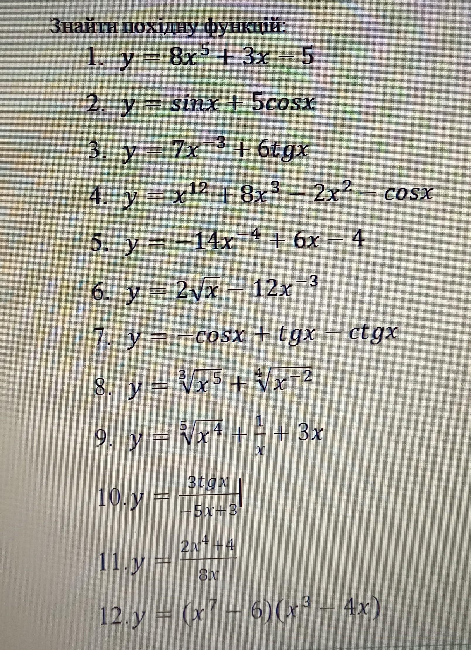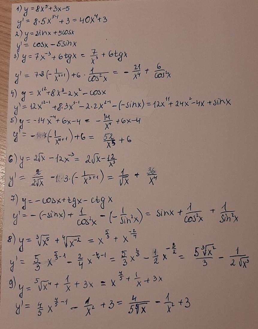 Производные на прикреплённой фотографии