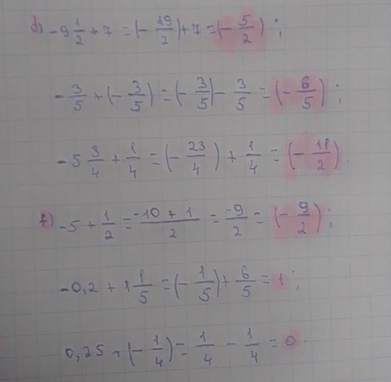 6) 0,25 + ( - 1/4 ) = 0,25 - 25/100 = 0,25 - 0,25 = 0.