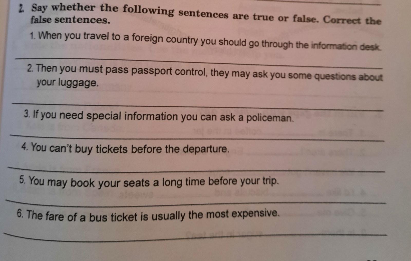 1. False. Когда вы отправляетесь в другую страну, вы должны пройти иммиграционный или таможенный контроль, а не стойку информации.