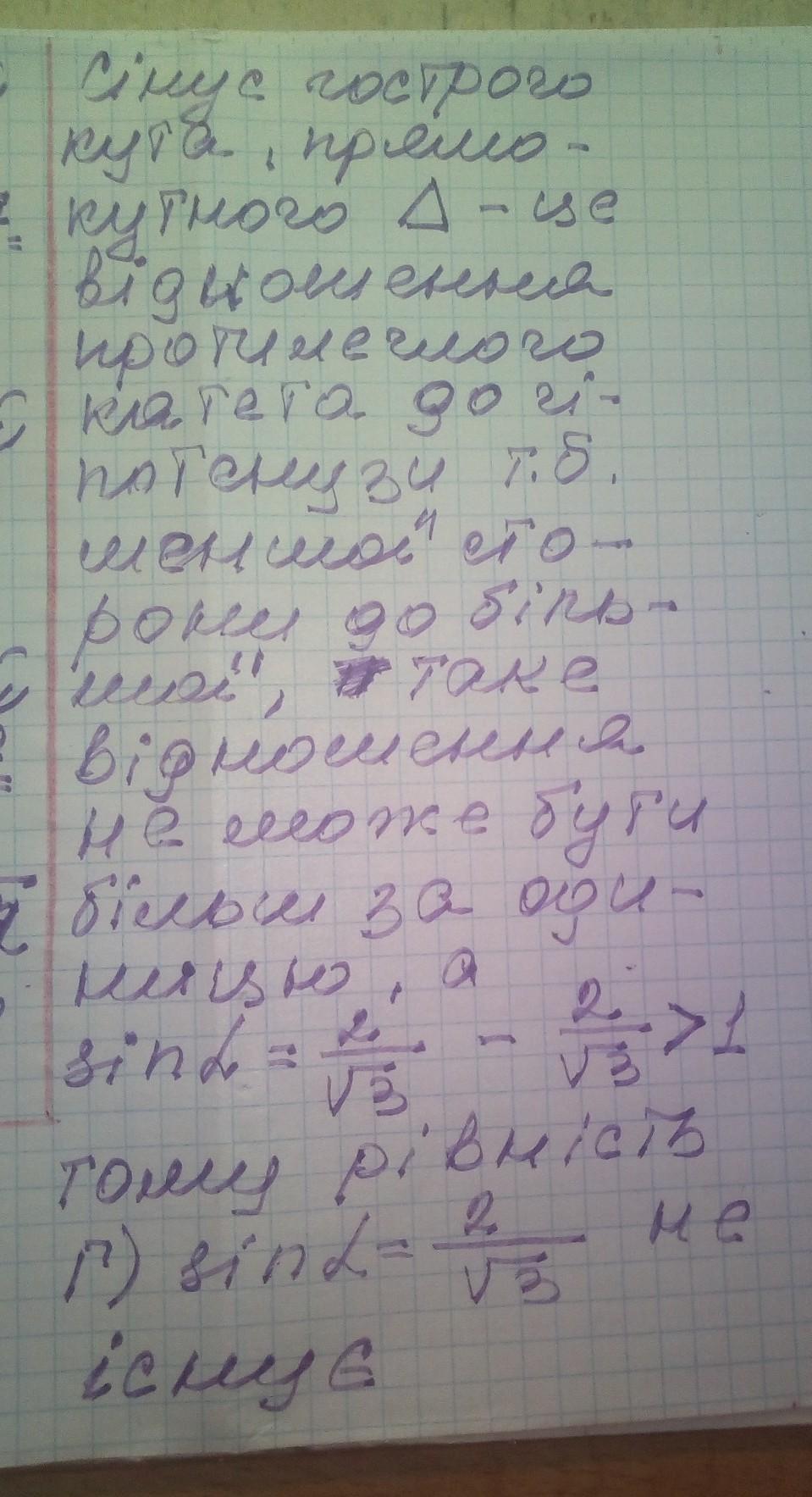 Нехай а - гострий кут прямокутного трикутника. Яка з даних рівностей не може виконуватися?