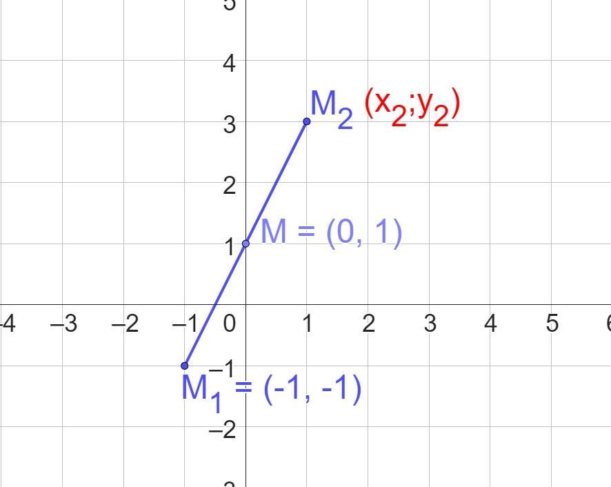 Точка М делит отрезок М1 М2 пополам. При этом М1 = М1(-1; -1) и М=М(0; 1). Найти координаты точки М2.