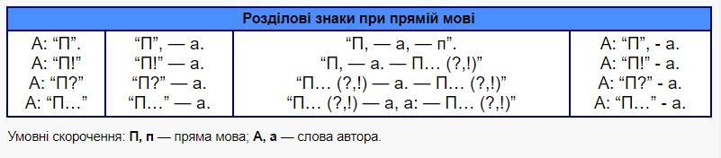 Пряма мова стоїть перед словами автора — вона береться в лапки, після неї ставиться кома (знак питання, знак оклику, три крапки) і тире. Слова автора пишуться з малої букви: «П», — а. «Хай він б'ється», — хан хитрує і до князя шле посла