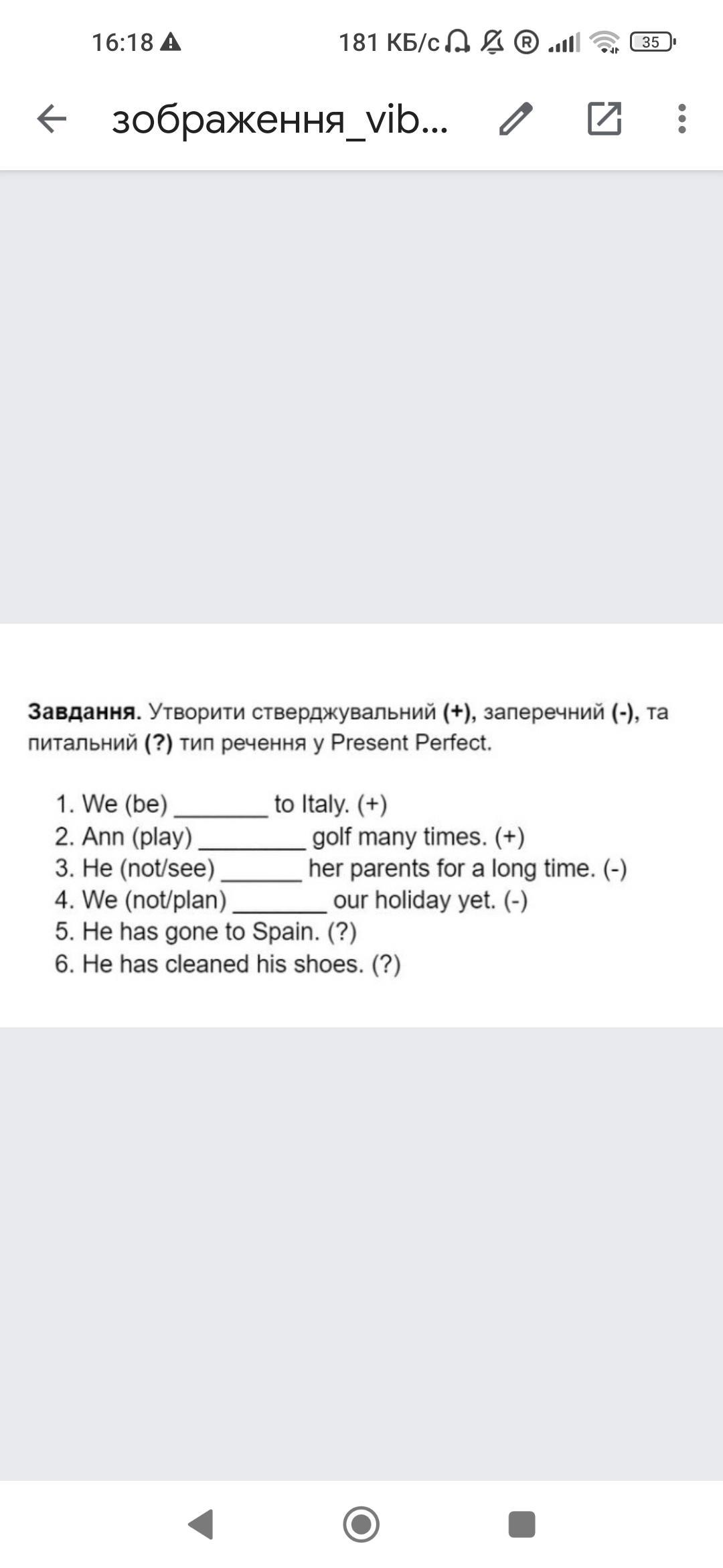 1. We have been in Italy. We haven't been Italy. Have we been in Italy?
