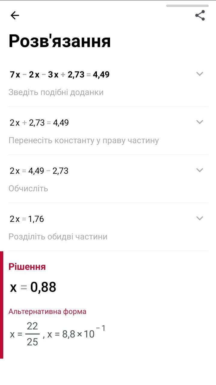 4) 7x - 2x - 3x + 2,73 = 4,49.