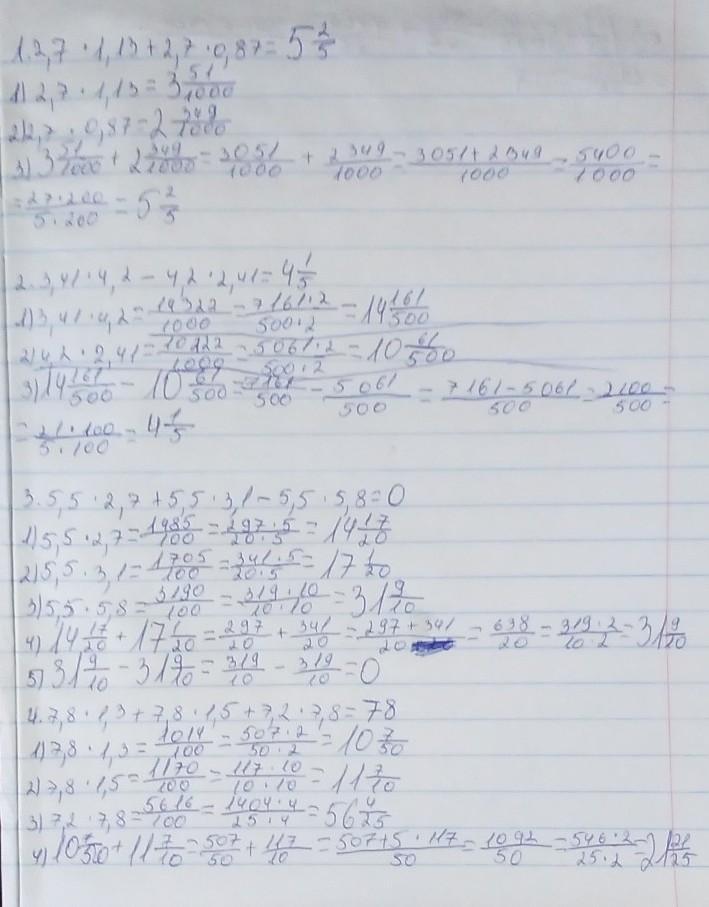 4) 7,8 ⋅ 1,3 + 7,8 ⋅ 1,5 + 7,2 ⋅ 7,8.
