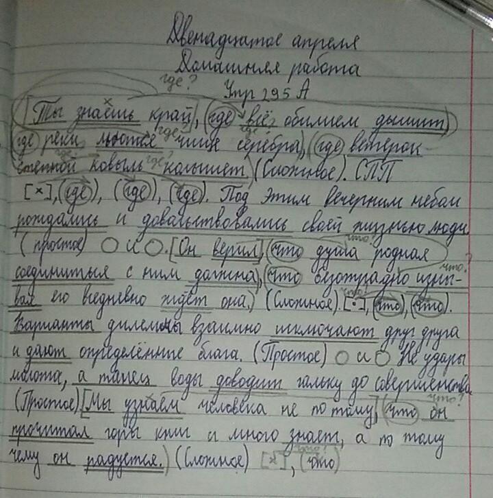 295А. Спишите, расставляя недостающие знаки препинания. Подчеркните грамматические основы, определите типы (простое, сложное) предложений. Укажите сходства и различия простых и сложноподчиненных предложений. Составьте схемы предложений.