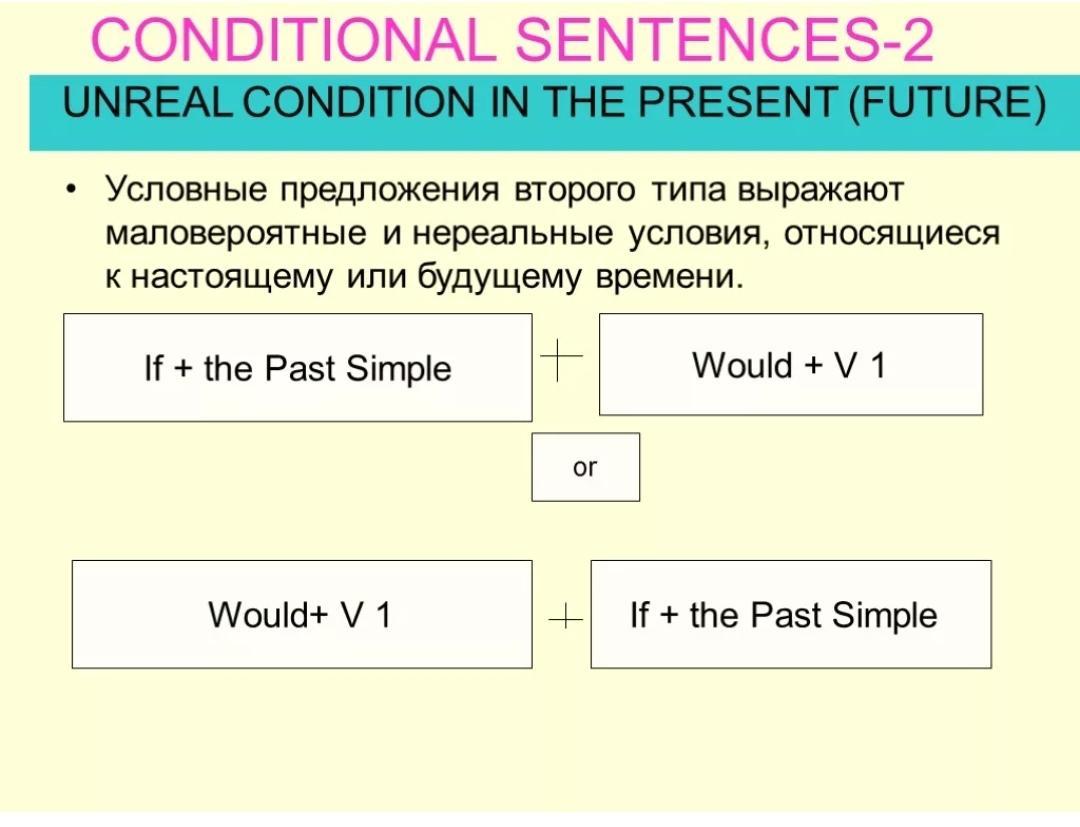 Условные предложения II типа выражают нереальное условие в настоящем или будущем. Они употребляются, когда мы говорим о том, что могло бы произойти при определенных условиях.