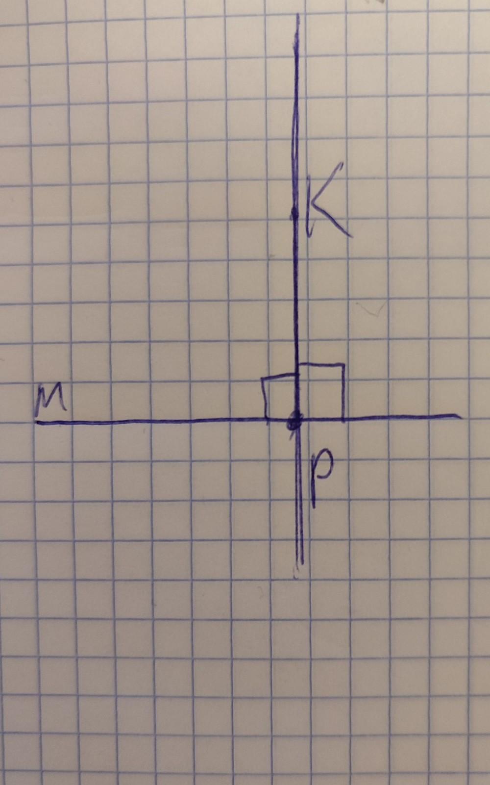 накресліть пряму m та позначте точку p, що їй належить. Проведіть пряму PK пермендикулярно до прямої m