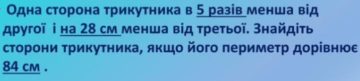 для нахождения x(самой маленькой стороны треугольника) мы должны 56/7