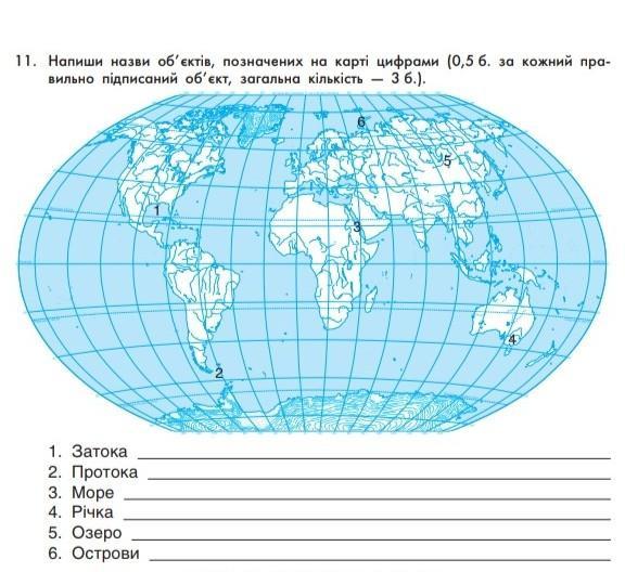 11. Напиши назви об'єктів, позначених на карті цифрами Завдання на фото,віддам всі бали дурню не писати.