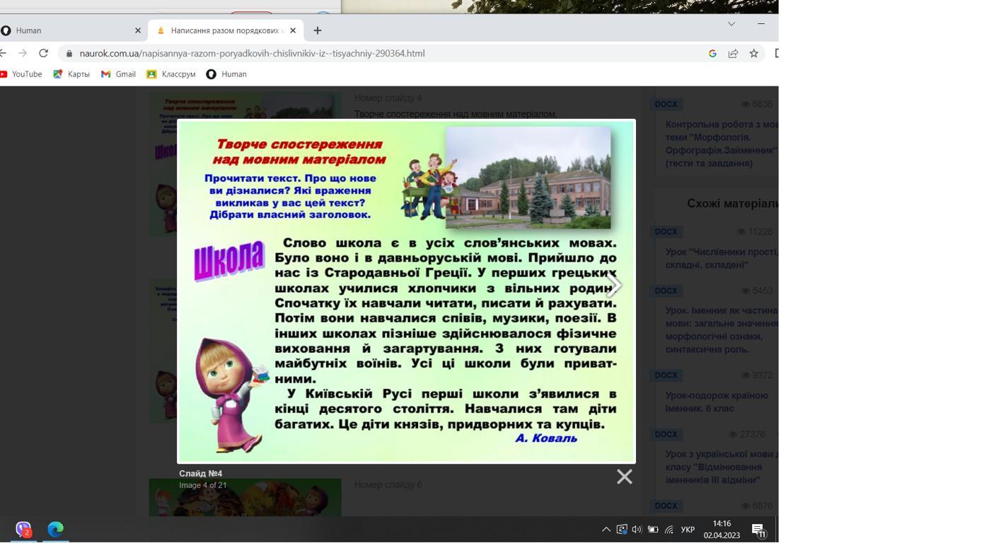 Про те, хто перший навчався у школі та про те, що вчили там. Також, коли з'явилися перші шкоди у Київській Русі.
