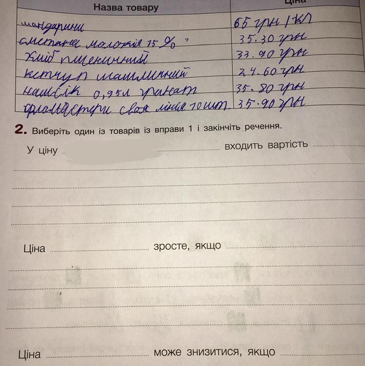 2. Виберіть один із товарів із вправи 1 і закінчіть речення.