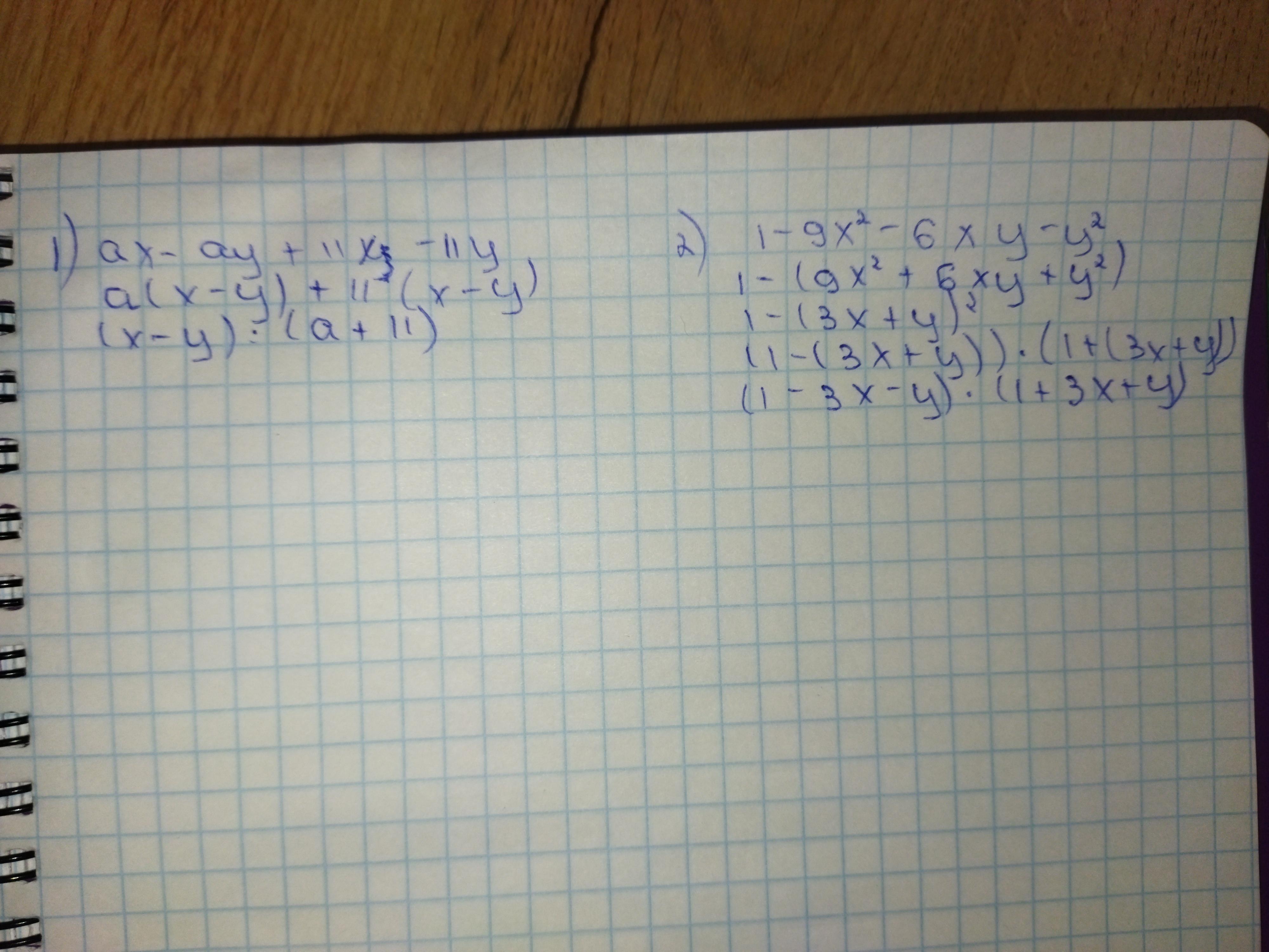 1) ax - ay + 11x - 11y = a(x - y) + 11(x - y) = (a + 11)(x - y)