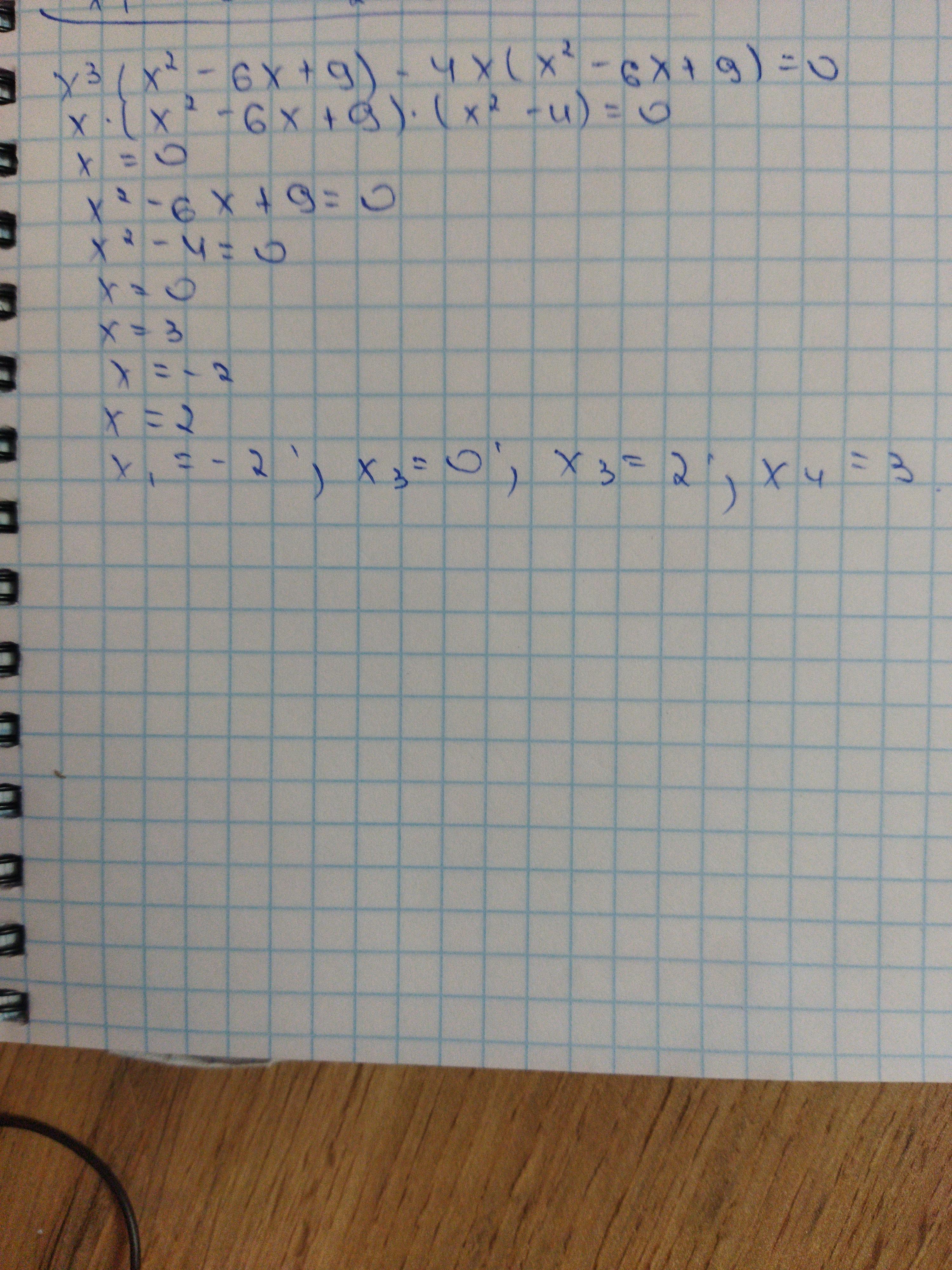 х³(х²-6х+9)-4х(х²-6х+9)=0​