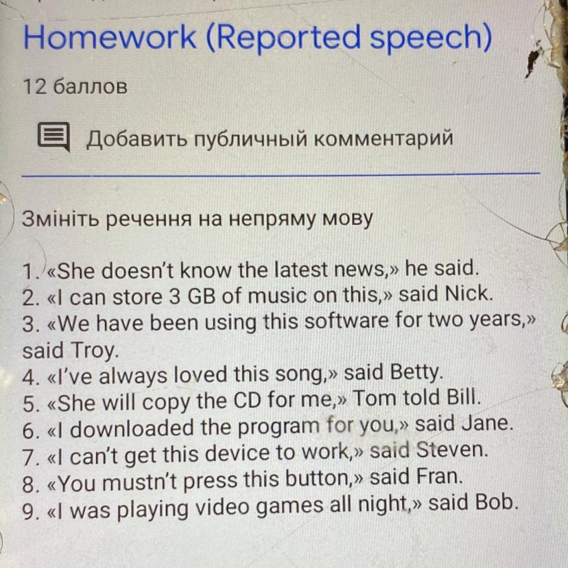 9) Bob said that he had been playing video games all night.