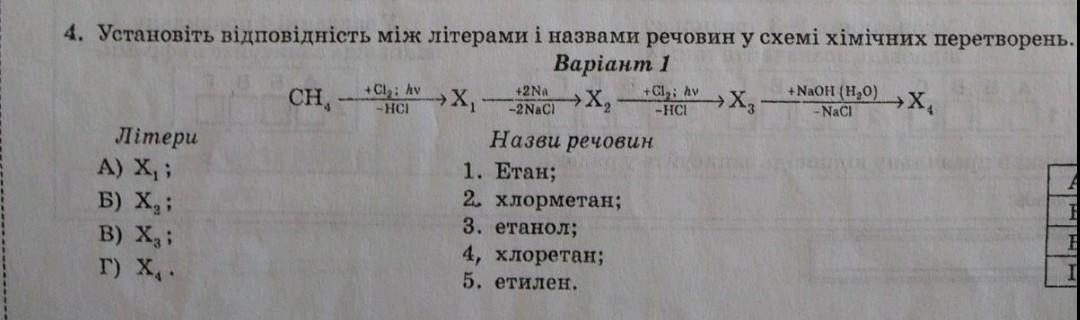 4. Установіть відповідність між літерами i назвами речовин у схемі хімічних перетворень