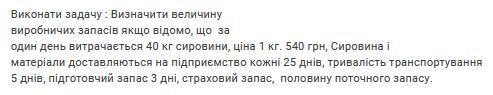 Отже, величина виробничих запасів становить 1480 кг сировини.: