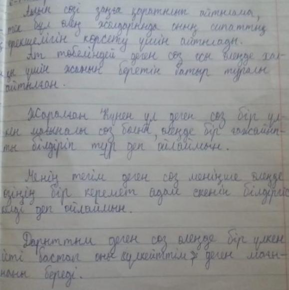 Алып сөздерді айта алғанын көрдім, Ат төбеліндей халыктын. (2005) Аныз унаган Жаралған күннен Ұл жайлы! Тәуелсіздік ше? Ол - менiн тегiм, ұлдарыма оны дарыттым.