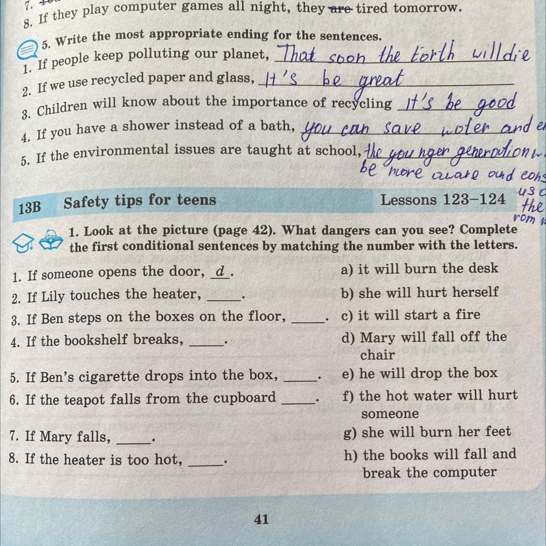 1. Look at the picture (page 42). What dangers can you see? Complete-