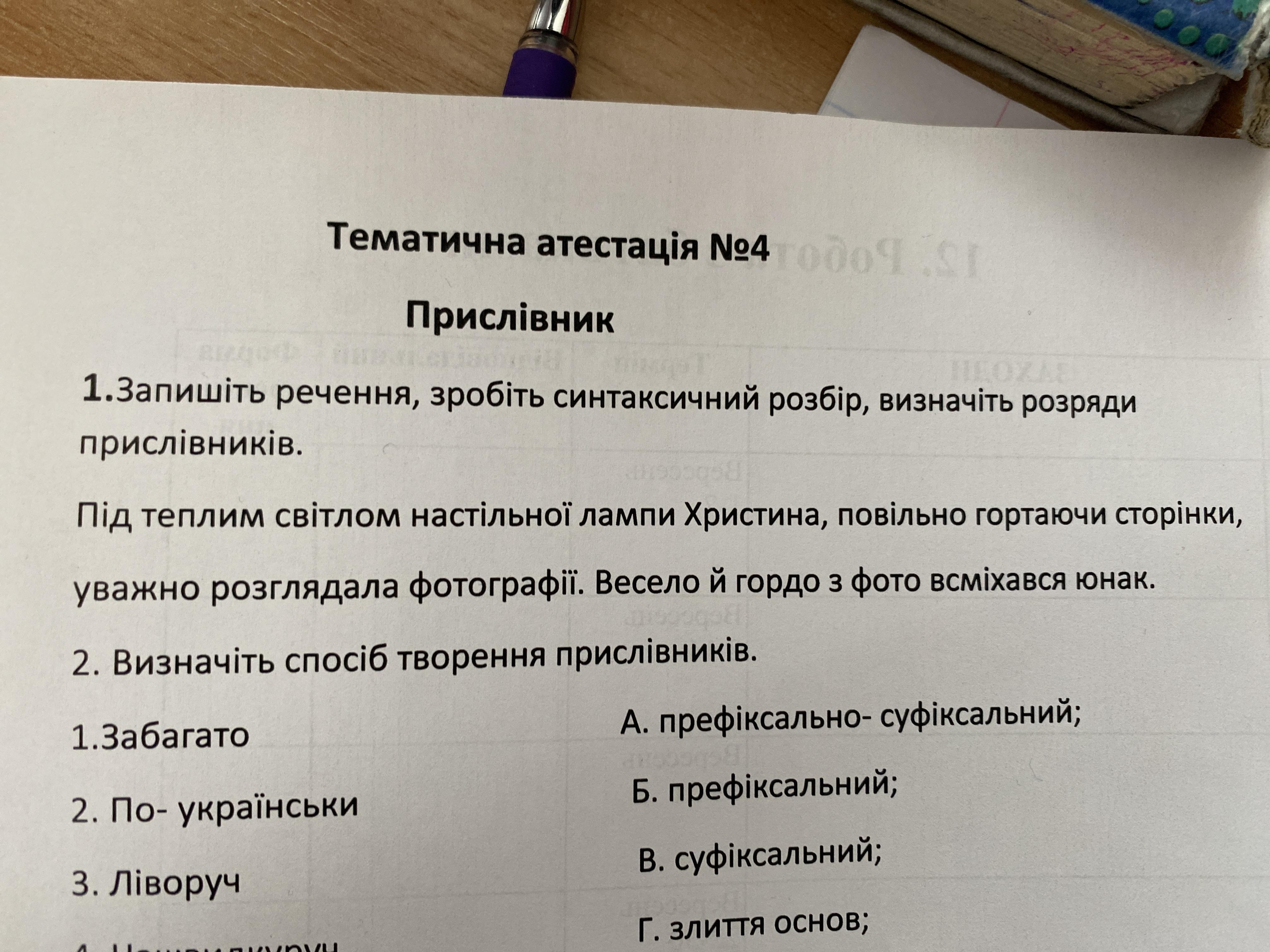 Речення: Під теплим світлом настільної лампи Христина, повільно гортаючи сторінки, уважно розглядала фотографії.