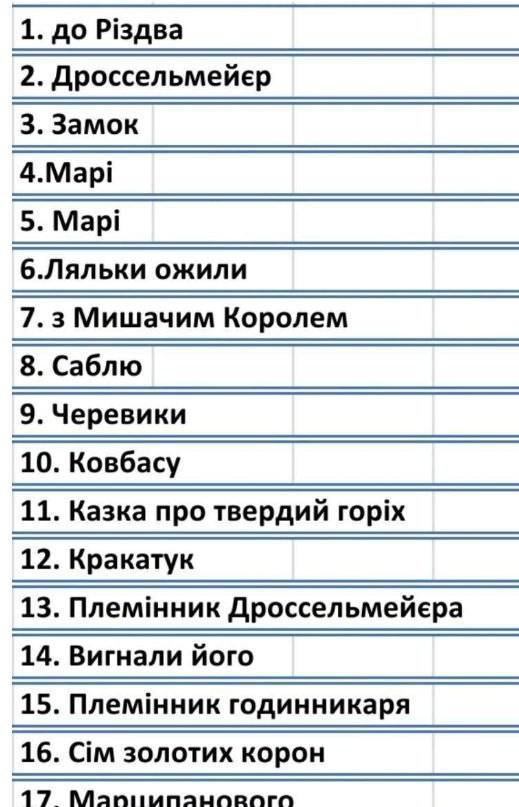 8.Який предмет допоміг Марі врятувати Лускунчика під час битви з мишами? 9.Який горіх міг повернути красу королівнi?