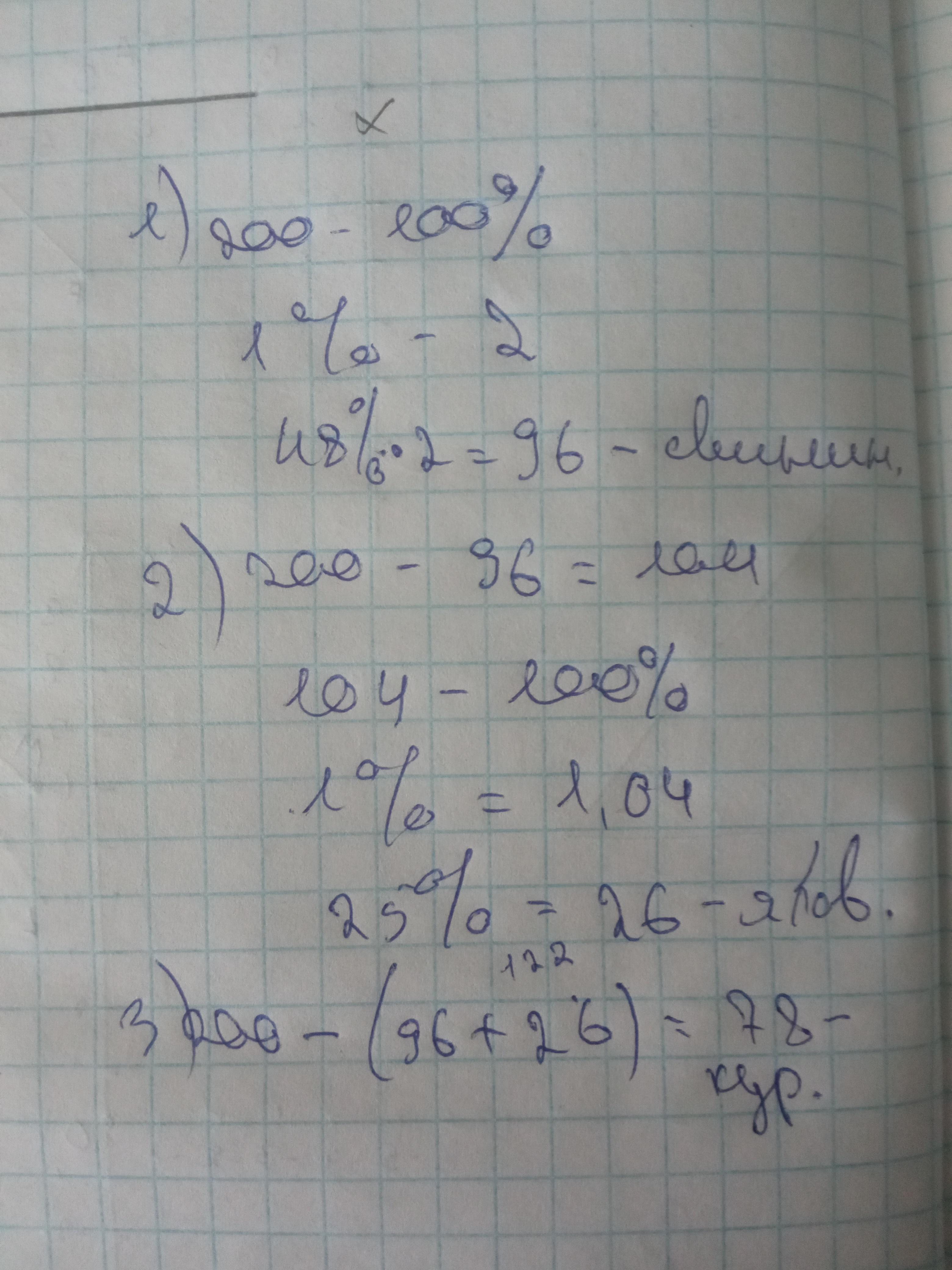 У кафе завезли 200 кг м’яса: свинину, яловичину й курятину. Свинина становила 48% усього м’яса, яловичина – 25% решти. Скільки кілограмів курятини завезли в кафе?