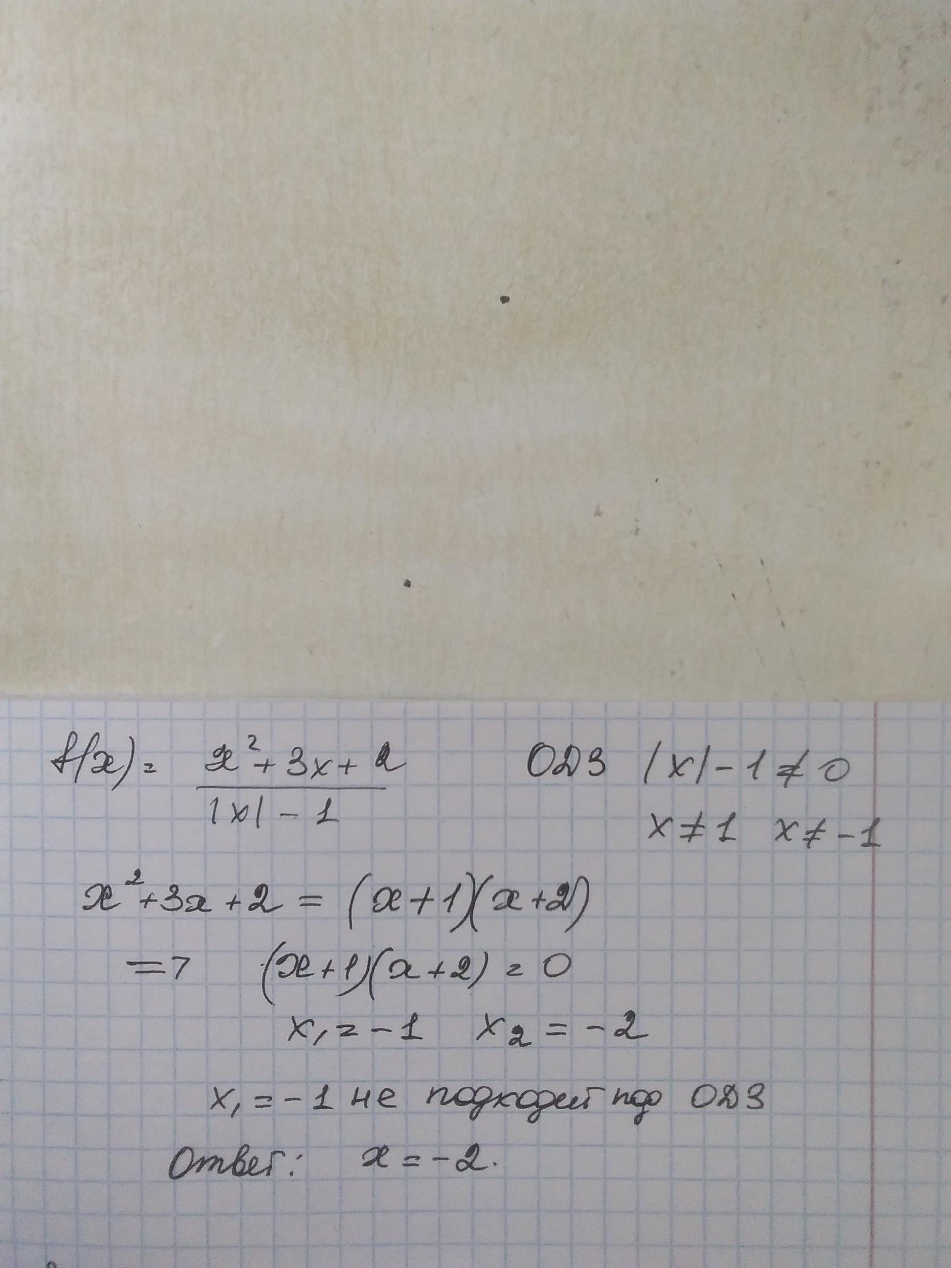 Знайти нулі функції f(x)=x2+3x+2/|x|-1