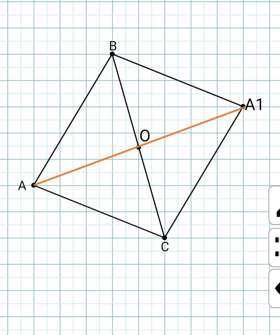 Побудувати трикутник А1В1С1 ,симетричний трикутнику АВС,відносно т. О ,яка є серединою стороны ВС.
