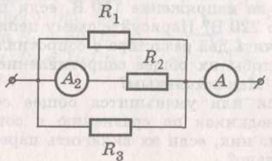 Усі опори по 4 Ом. Амперметр А показує силу струму 12 А. Яка напруга є в колі? Яка сила струму на амперметрі А2?