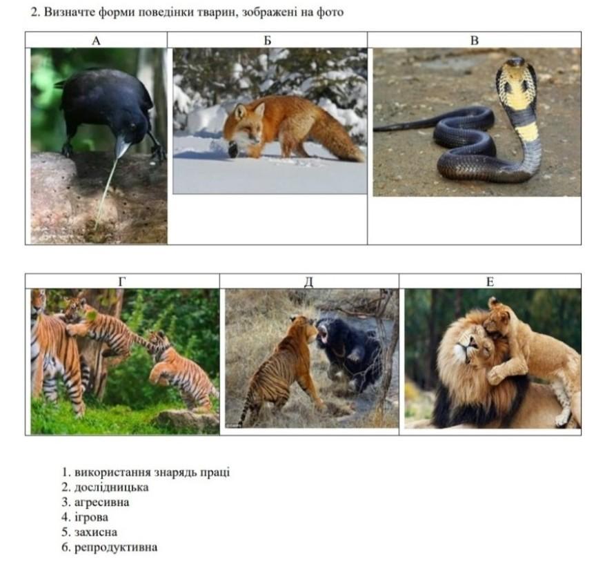 Визначте форми поведінки тварин, зображені на фото