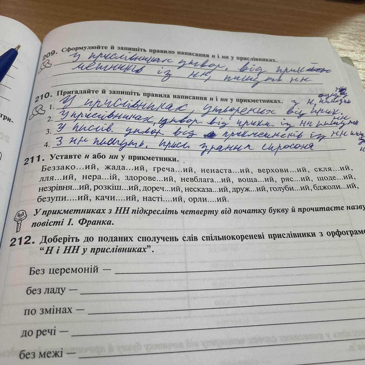 беззаконний, жаданий, гречаний, ненастанний, верховинний, скляний, лляний, неранній, здоровенний, невблаганний, вощаний, рясний, щоденний, незрівнянний, розкішний, доречний, несказанний, дружний, голубиний, бджолиний, безупинний, качиний, настінний, орлиний