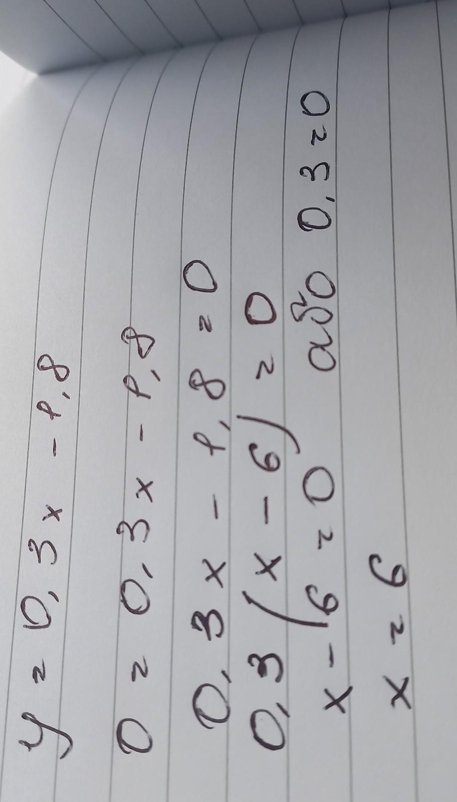 не виконуючи побудови знайти координати точок перетину з осями координат графіка функції y=0,3x-1,8
