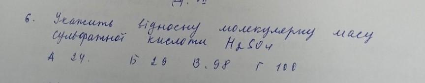 6. Укажить відносну молекулярну масу сульфатної кислоти