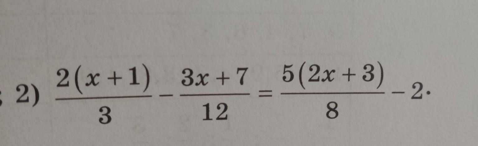2(х+1)/3-3х+7/12=5(2х+3)/8-2