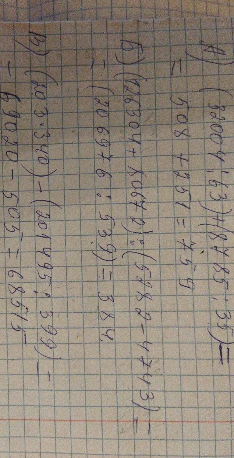 А. К частному чисел 32004 и 63 прибавить частое чисел 8785 и 35
